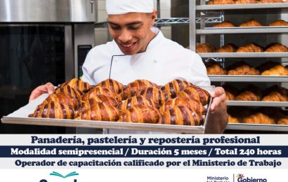 Matricúlate Aquí PANADERÍA, PASTELERÍA Y REPOSTERÍA PROFESIONAL Obtén doble certificación en 5 meses Modalidad semipresencial: 95% práctico – 5% teórico Capacitación práctica: aprendes haciendo, SIN MATERIAS DE RELLENO DOBLE CERTIFICACIÓN: Certificado del MINISTERIO DE TRABAJO Incluye verificación en la página del Ministerio de trabajo Certificado institucional con el…