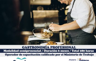 Matricúlate Aquí GASTRONOMÍA PROFESIONAL Obtén doble certificación en 6 meses Modalidad semipresencial: 95% práctico – 5% teórico Capacitación práctica: aprendes haciendo, SIN MATERIAS DE RELLENO DOBLE CERTIFICACIÓN: Certificado del MINISTERIO DE TRABAJO Incluye verificación en la página del Ministerio de trabajo Certificado institucional con el aval de: World…